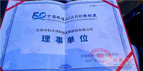 在此次大會上,中科大洋正式成為“中國聯(lián)通5G應(yīng)用創(chuàng)新聯(lián)盟”理事單位,并獲得5G應(yīng)用優(yōu)秀案例獎,商同副總裁代表大洋出席當日召開的會議并上臺領(lǐng)獎。