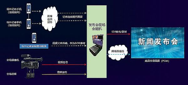 此外,部分問題也可由場外記者用手機進行錄制并通過網絡發送到會場,在全能機上作為素材進行播出提問。