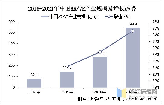 根據深圳AR協會披露的數據顯示,2020年中國AR/VR市場規模達278.9億元,同比增長88.83%,受益于企業級和消費級的內容更加豐富、核心技術的突破以及5G商用落地,AR/VR普及速度加快,預計2021年AR/VR產業規模將達到544.5億元。