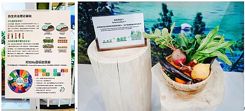索尼中國可持續發展報告2022》(左);環境創新材料及環保袋DIY區域(右)