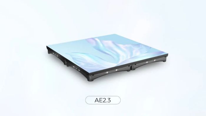 在中小型影棚、直播間或是電視臺場景中,LED地磚屏經常用于配合立面屏和天幕屏打造更加夢幻的三維空間,來達到更震撼、更有沉浸感的拍攝效果。可以說地磚屏是舞臺藝術在地面的延伸,AE2.3正是為此而生。AE2.3表面達到IP67的防護等級,具有高承載性、高耐磨性、高平整度、防磕碰等優勢。AE2.3全機身為壓鑄鋁構造,按照超過2噸/平米的承載力進行設計和制造。蜂巢式殼體組成一個有機整體,可讓各點受力均勻分布,并有效地傳導到地面,讓地磚屏的顯示部件受到保護,穩定持續輸出顯示畫面。高承載性使其完全可以應對拍攝現場各式道具、儀器、和工作人員遍布其間的復雜的應用場景,產品使用更加安全和規范。