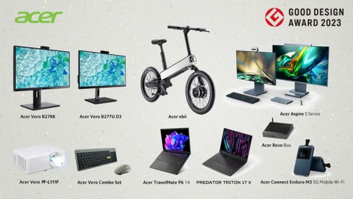 宏碁旗下多項產(chǎn)品榮獲2023 年Good Design設(shè)計大獎,其中以注重永續(xù)發(fā)展的Acer ebii 電動自行車及具環(huán)保理念的多款Vero 系列產(chǎn)品(包括顯示器、接口設(shè)備和節(jié)能投影機)為主角;更多獲獎產(chǎn)品包括Acer TravelMate P6 14商用筆記本電腦、Predator Triton 17 X 電競筆記本電腦、Acer Aspire S 系列AIO桌面計算機、Acer Revo Box 迷你計算機和Acer Connect Enduro M3 5G行動無線分享器。今年宏碁獲獎產(chǎn)品彰顯旗下于多個細(xì)分市場和生活型態(tài)上的設(shè)計創(chuàng)新。