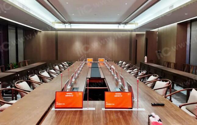 itc無紙化會議系統帶有升降式液晶屏和話筒,采用獨立升降設計,面板按鍵單獨控制液晶屏或咪桿升降,使用靈活,簡單易用,輕松解決設備隱藏、保管、控制問題,保障會場環境干凈整潔,彰顯高端大氣。