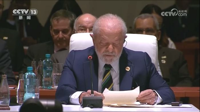 巴西總統(tǒng)盧拉在金磚國家領(lǐng)導(dǎo)人第十五次會(huì)晤上使用TAIDEN全數(shù)字會(huì)議系統(tǒng)發(fā)言