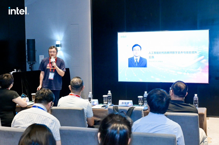 峰會現場,與會嘉賓通過多場專題技術論壇和小組會議進行了深入的交流和討論。英特爾研究院副總裁、英特爾中國研究院院長宋繼強發表了題為《加速融合創新,開啟數智未來》的主題演講,分享了英特爾探索綠色計算的方法論和技術進展。華東師范大學數據科學與工程學院教授王偉在“人工智能時代的教師數字素養與技能提升”主題報告中提出,教師的數智能力躍升與智慧教育發展緊密相關,并提出“數字人才=數字素養X智慧教育”的概念。