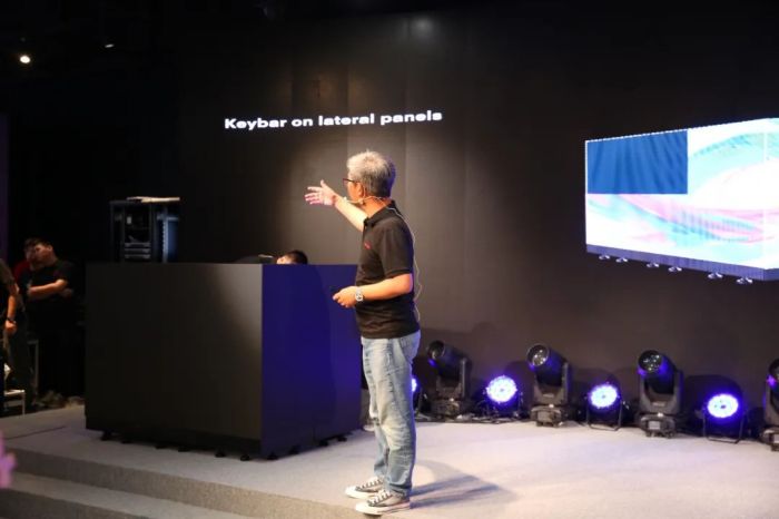 緊接著,在接下來的半個小時內,項目團隊繼續以驚人的速度,完成了整箱6面屏體的拼接,隨著最后一塊模組的安裝,MC整個箱體隨即同步點亮。整個過程行云流水,向現場來賓生動展示了MC在現場應用中的高效操作與便捷的靈活性。