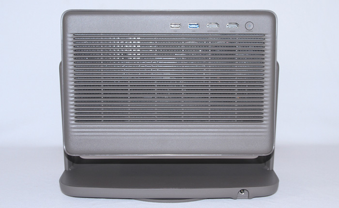 極米 RS20 PLUS的背部設計,延續整體簡約風格。大面積規整散熱孔,保障設備穩定運行,金屬質感外殼兼具美觀與耐用性。頂部接口豐富,從左到右依次排列著USB、藍色高速USB、HDMI等接口,滿足外接存儲、影音設備等拓展需求,圓形電源鍵簡潔易用。
